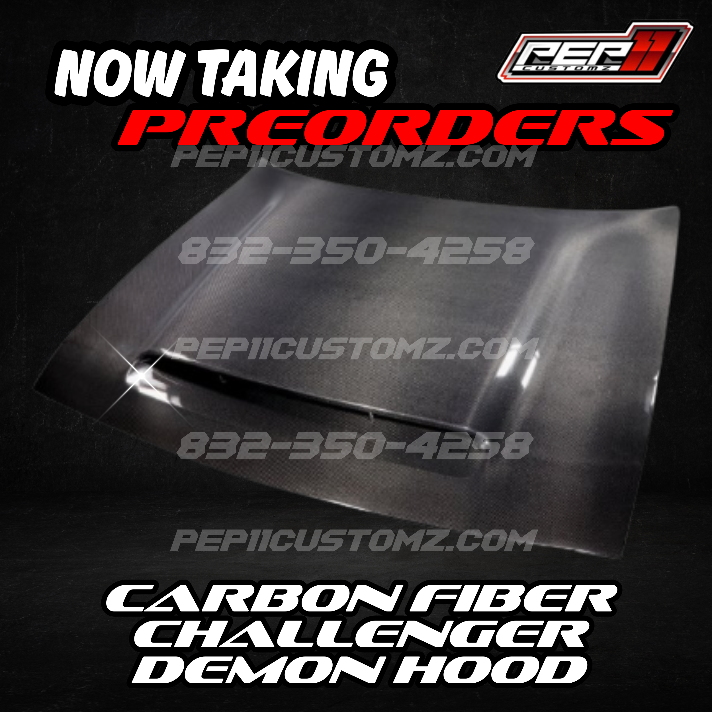 Carbon Fiber Challenger Demon Hood 15+ fits all models –**PRESALE** YOU ARE PREPAYING FOR THE PART. YOU WILL BE NOTIFIED ONCE PART ARRIVES, TO SCHEDULE PICKUP, OR INSTALLATION (INSTALLATION IS ADDITIONAL COST).